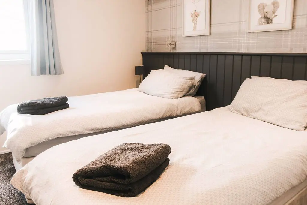Its a realhome from home,offering comfortable, open plan, modern living for upto 4 people:There’s two bedrooms, the master with a king sized bed and luxury hotel collection mattress, fitted wardrobes and TV. The second bedroom offers a pair of single beds and plenty of wardrobe space and smart TV.There’s a fully fitted, well equipped modern kitchen, open plan living space with large Smart TV and complimentary unlimited WiFi, Alexa to play your music and a Netflix subscription for those evenings in.The summer room to the front doubles as a dining area and there’s a gorgeous shower room with walk in shower and underfloor heating.